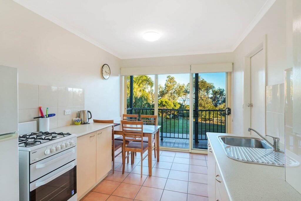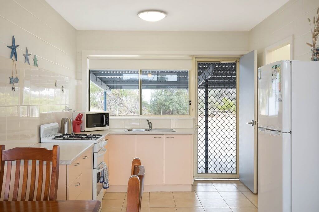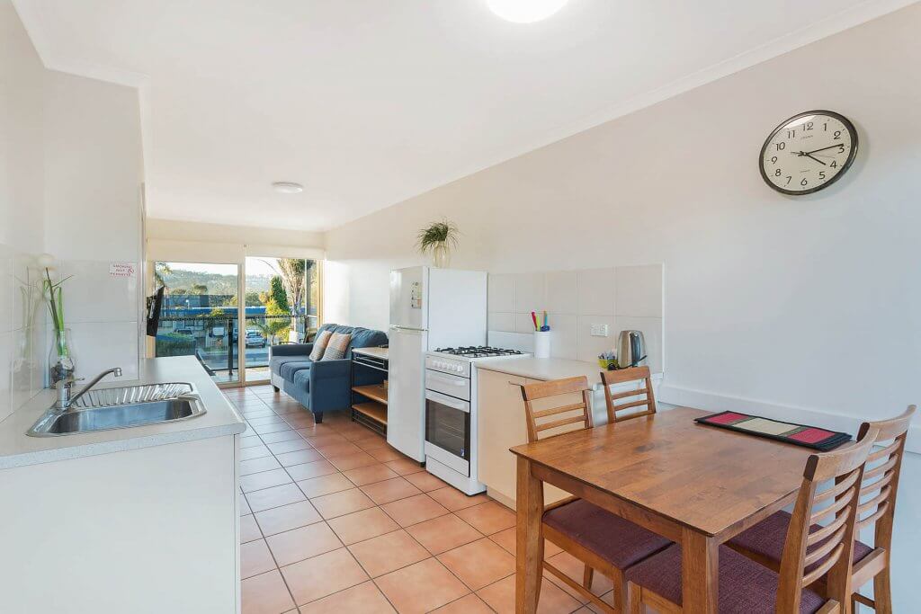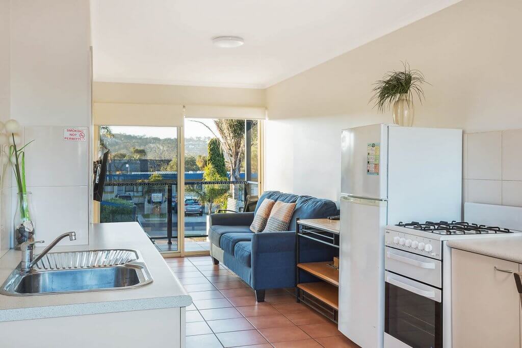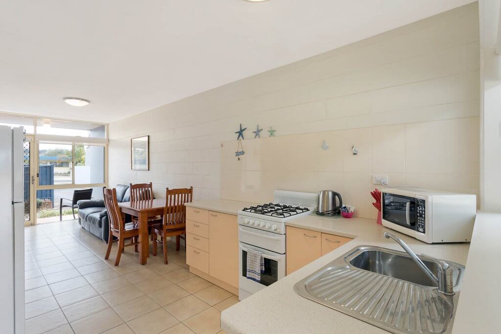 - Each apartment has a full kitchen with a fridge, oven and microwave.