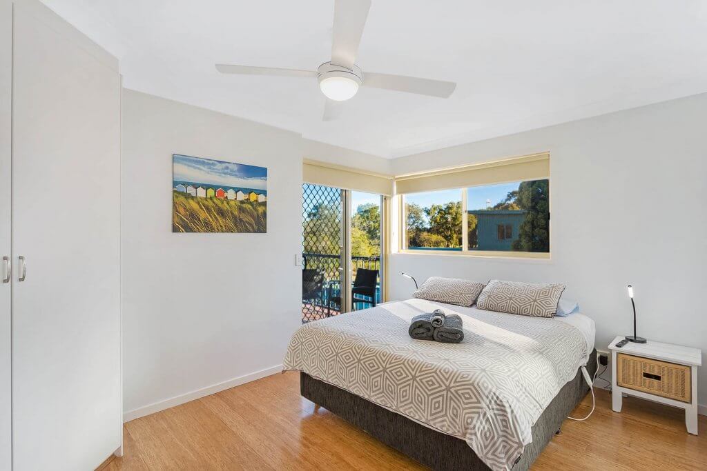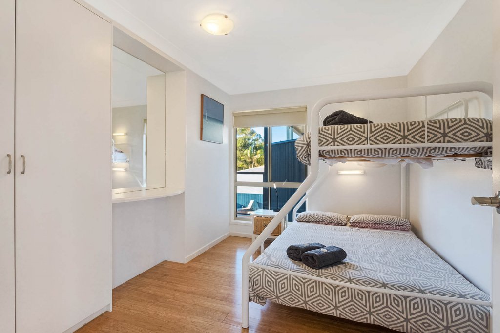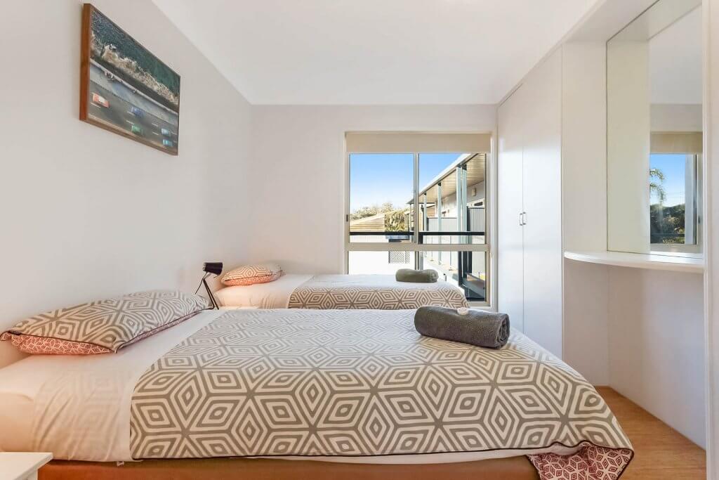 - There is a queen bed in the main room, a trio bunk in the second bedroom and 2 x single beds in the third bedroom. This apartment will sleep up to 7 people comfortably.